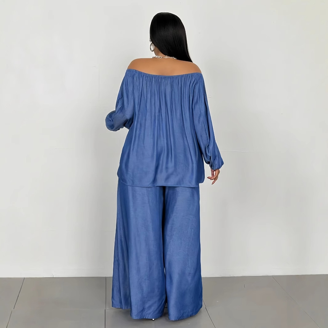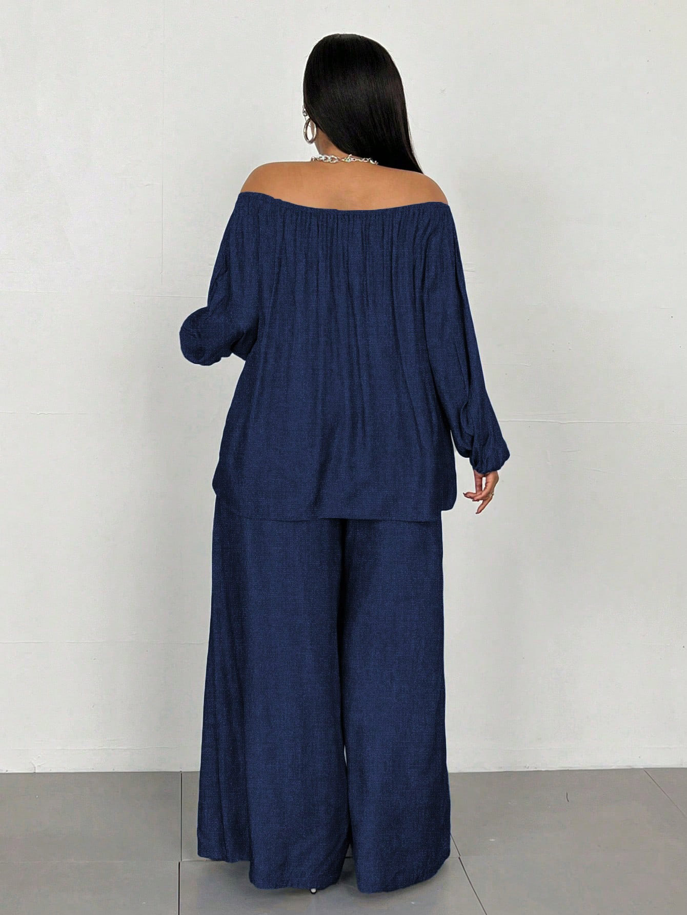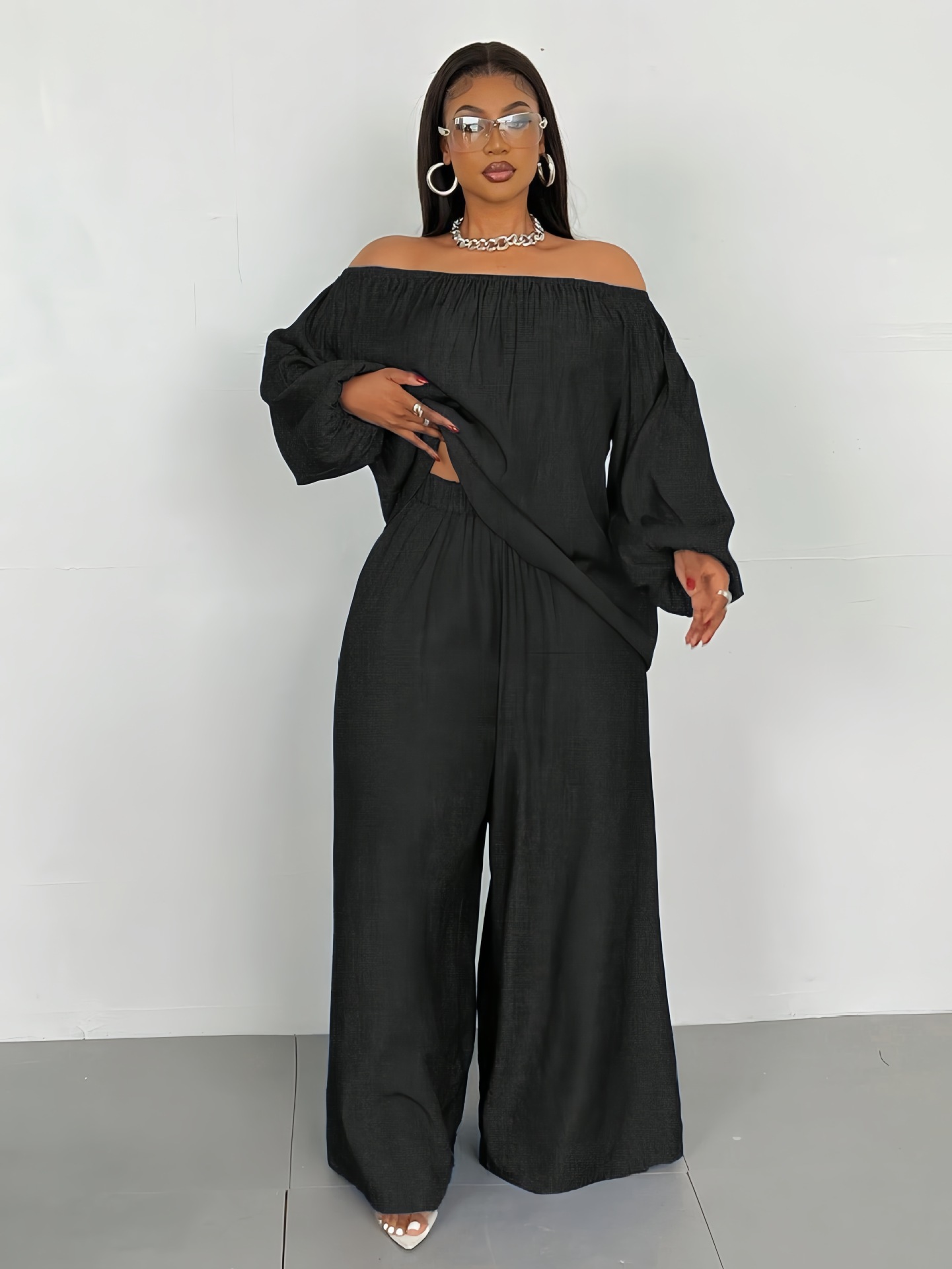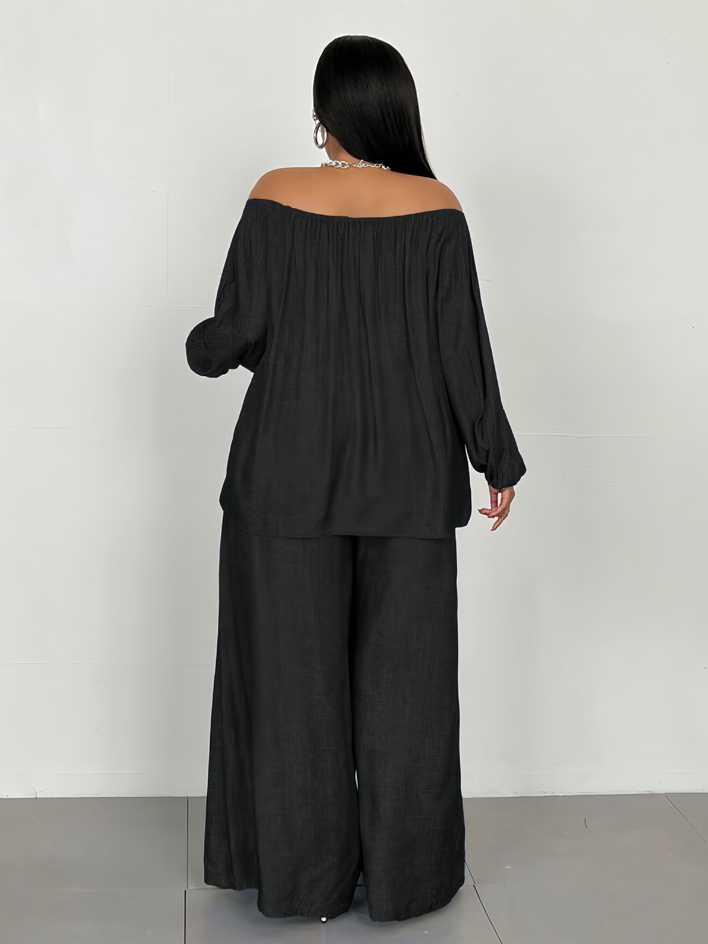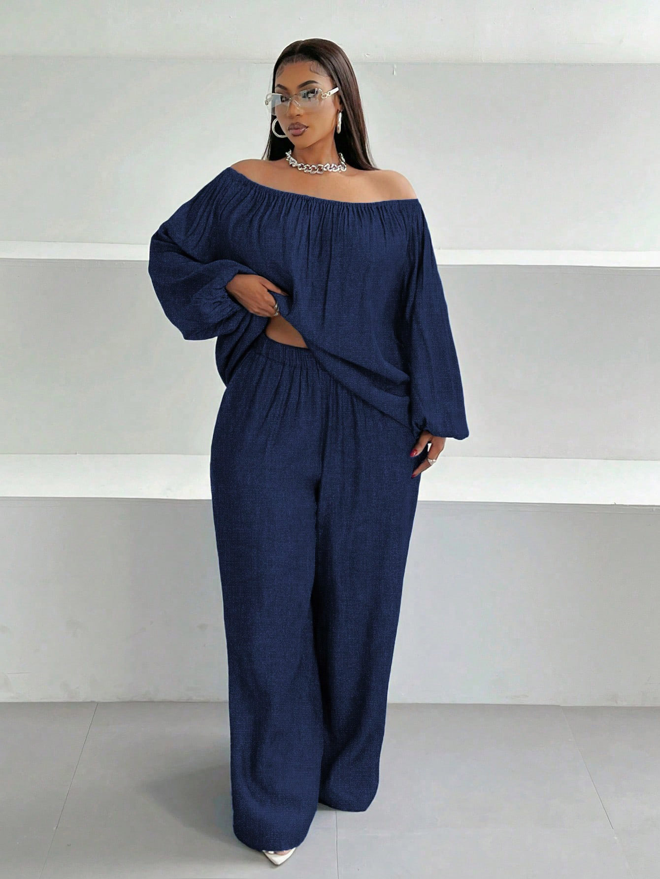 Off-shoulder Loose Top Wide Leg Pants Two-piece Set